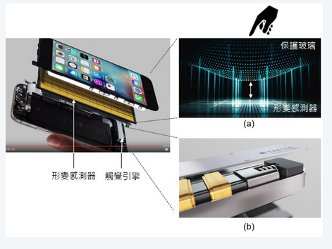 結(jié)合上面兩種元件,經(jīng)由形變感測器偵測使用者下壓的力量大小,再經(jīng)由觸覺引擎提供使用者即時的觸覺反饋,讓觸摸變得更有智能,也為使用者創(chuàng)造了更完美的觸摸新體驗。